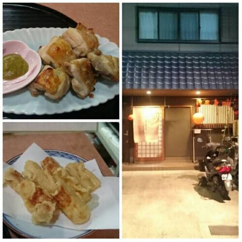 日曜夜のご近所飲み、2回めの訪問。鶏ゆずこしょうとちくわてんぷら。