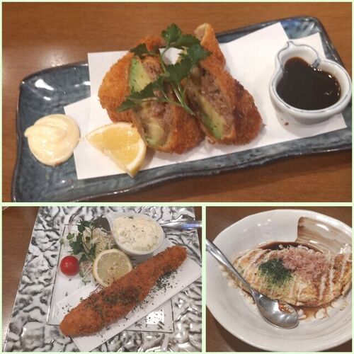 日曜日に行っている店がマスター都合でしばらくお休みということで駅前までバスで来て今週の打ち上げ。 アボカド牛ミンチフライ、ノルウェーサーモンタルタルソース、ほんわか人気のとん平焼。