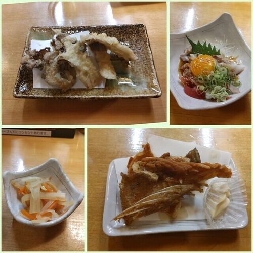 日曜桂駅飲みは、やや間が空いてや台ずし。例によってお寿司はいただきません。 舞茸とエリンギの天ぷら、海鮮ユッケ、魚皮せんべい。