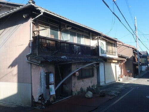 菱屋町商店街のアーケードの終わるあたりの東側(琵琶湖側)。 いかにもそれらしき建物。 その手前の空き地、かつては典型的な建物があった。去年の頭にはリノベーション向け物件として売りに出ていた。