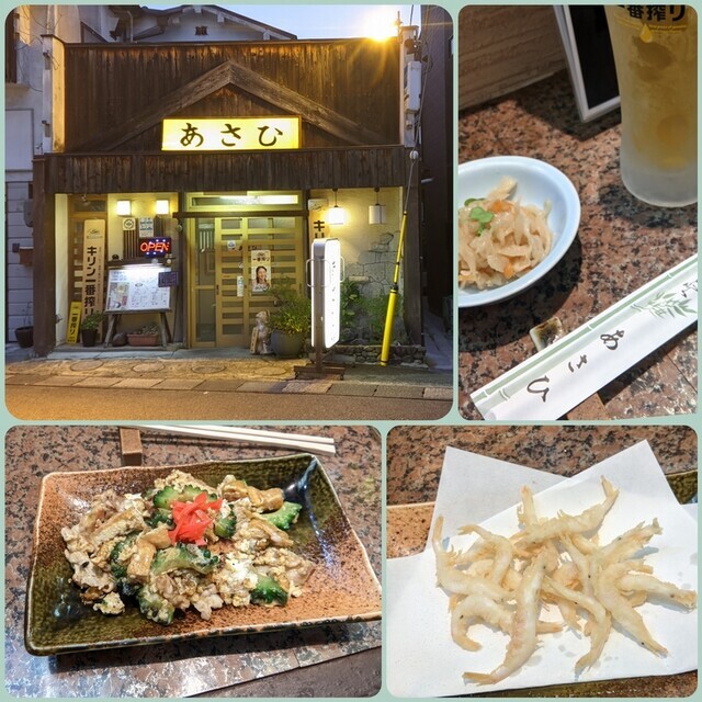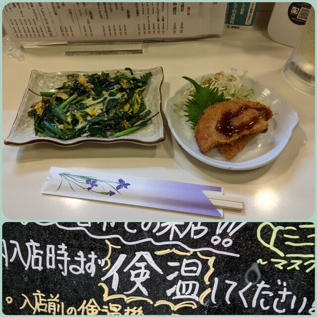 2022-05-21 あさひ、よいどころ、寿海 sakaba 阪急長岡天神駅からJR長岡京駅付近まで歩いていって探索。 居酒屋あさひ 悪くはないのになぜかこの時はがらがらだった。白エビ唐あげ600円、ゴーヤチャンプルー500円。ゴーヤチャンプルーは油揚げ入り。 asahi-kyouto.owst.jp 沖縄料理 よいどころ 近くで2軒め。またしてもゴーヤチャンプルー、780円。油みそ300円。お通しは長岡らしく筍。 沖縄料理 居酒屋 よいどころ 京都長岡京店〒617-0833 京都府長岡京市神足1-6-6 075-953-0256地図や店舗情報を見るr.gnavi.co.jp 大衆酒場寿海本店 長岡天神駅近くまで戻ってきて、1年ぶり、たぶん3回めの寿海に。昔は本店を名乗っていなかったような。ニラ玉炒め300円とハムカツ290円。 木偏の「検」ですな。
