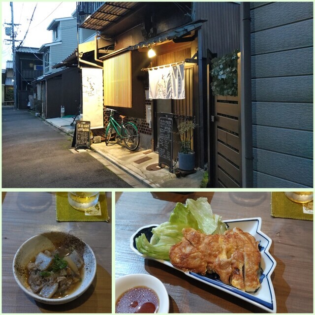 路地を行ったところの定食屋さんで、ちょい飲みも可能。牛すじと大根の炊いたん220円、鶏もも肉家のピカタ600円。